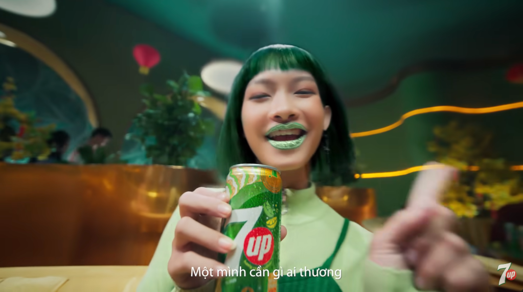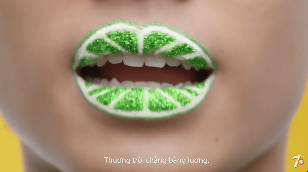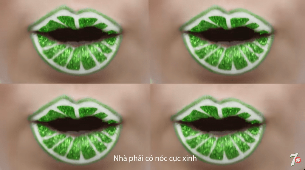 The Lime Lips, a visual cue inspired by the lime ingredient of the product, appear after drinking 7 Up. These Lime Lips add a touch of joy and playfulness to the Tet season and are featured across all platforms during this festive period.