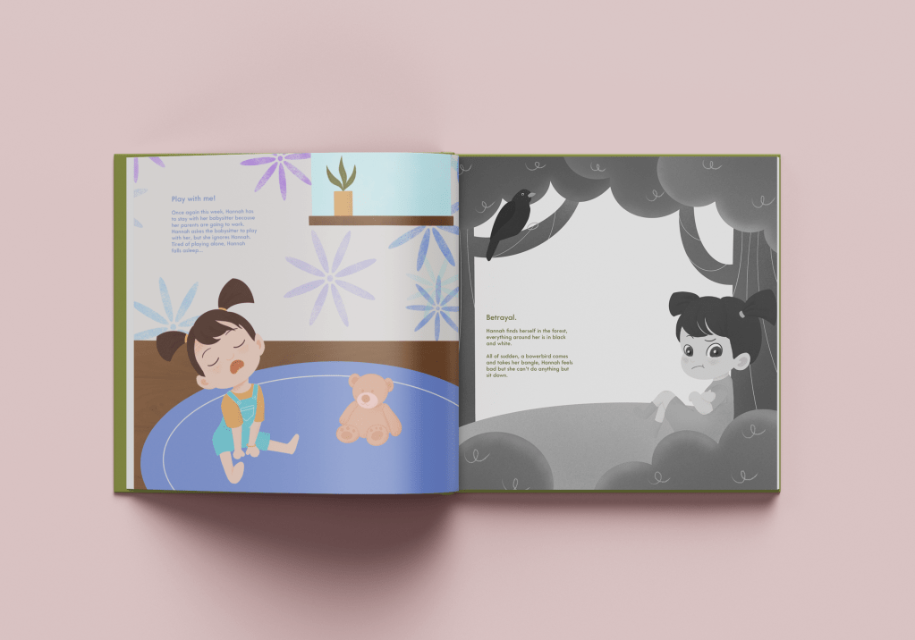 Yes, a book. The team created the story about a little girl get through all 5 wounds with magic. I Illustrated the book and we called it Hannah Through The Forest.